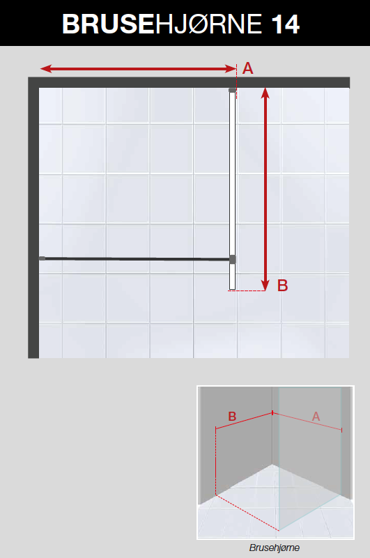 Brusehjørne 14. Højde .: Maks. 2000 mm. Bredde mellem 200-1000 mm