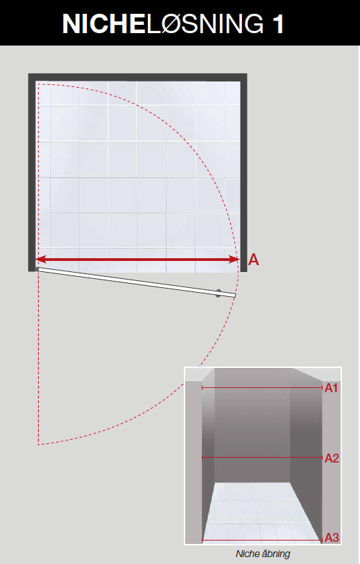 Nicheløsning 1. Højde .: Maks. 2000 mm. Bredde mellem 200-900 mm.