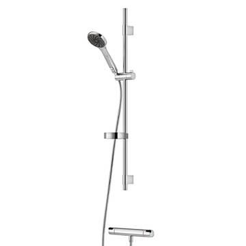 Mora Cera shower kit med Mora Cera termostatarmtur og Mora Cera brusersæt S5. Termostatarmaturet kompenserer for temperatur- og trykvariationer. skoldningssikring v/38°C og v/42°C. eco stop 6 l/min ved 3 bar. g ½" 150-153 c/c. ekstra brugervenlige greb, godkendt af svenska reumatikerförbundet. brusersættet er med kalkafvisende si. easy-clean system. flexible rørholdere med skjulte skruehuller, der kan genbruge eksisterende huller i væggen. 1750 mm slange i metal med pvc og bpa fri slange indvendig. slangen opfylder en1113. valgfri tilslutning med/uden luftindblanding, der giver komfort flow på 6 l/min. max. flow 10 l/min