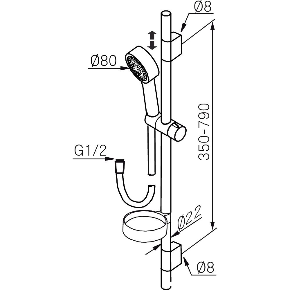 • 1750 mm slange i metal med PVC og BPA fri slange indvendig.