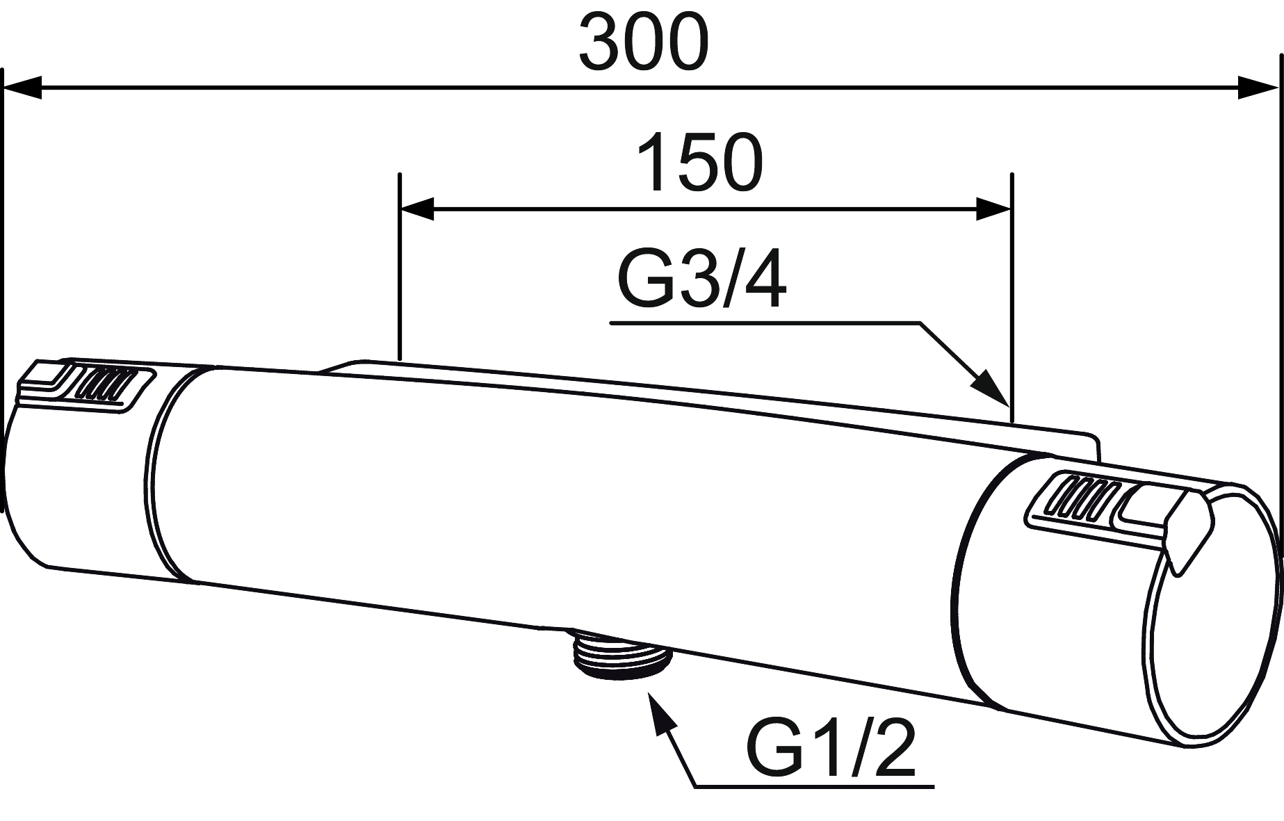 Mora MMIX T5 Termostatbatteri med 1/2" afgang nedad i krom - Excl. forskruninger og rosetter