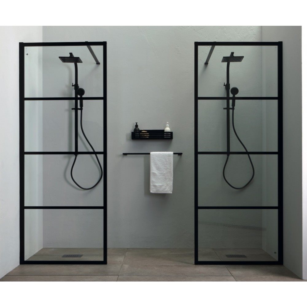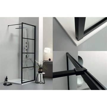 Denne populære brusevæg i mat sort bringer ægte newyorker stemningen ind i badet, hvor glasvæggene minder om de klassiske sprossede vinduer i de gamle fabriksbygninger. En iøjnefaldende detalje i dit badeværelse, der gør badeværelset langt mere spændende og kontrastfuldt.