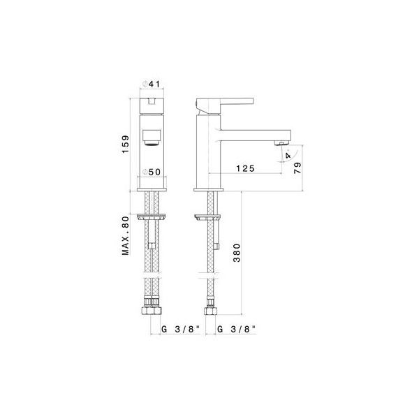 For at gøre installationen af armaturet så enkelt som overhovedet muligt, leveres det med fleksible 3/8" tilslutningsslanger.