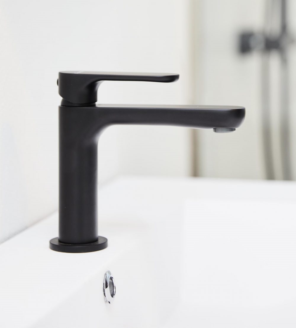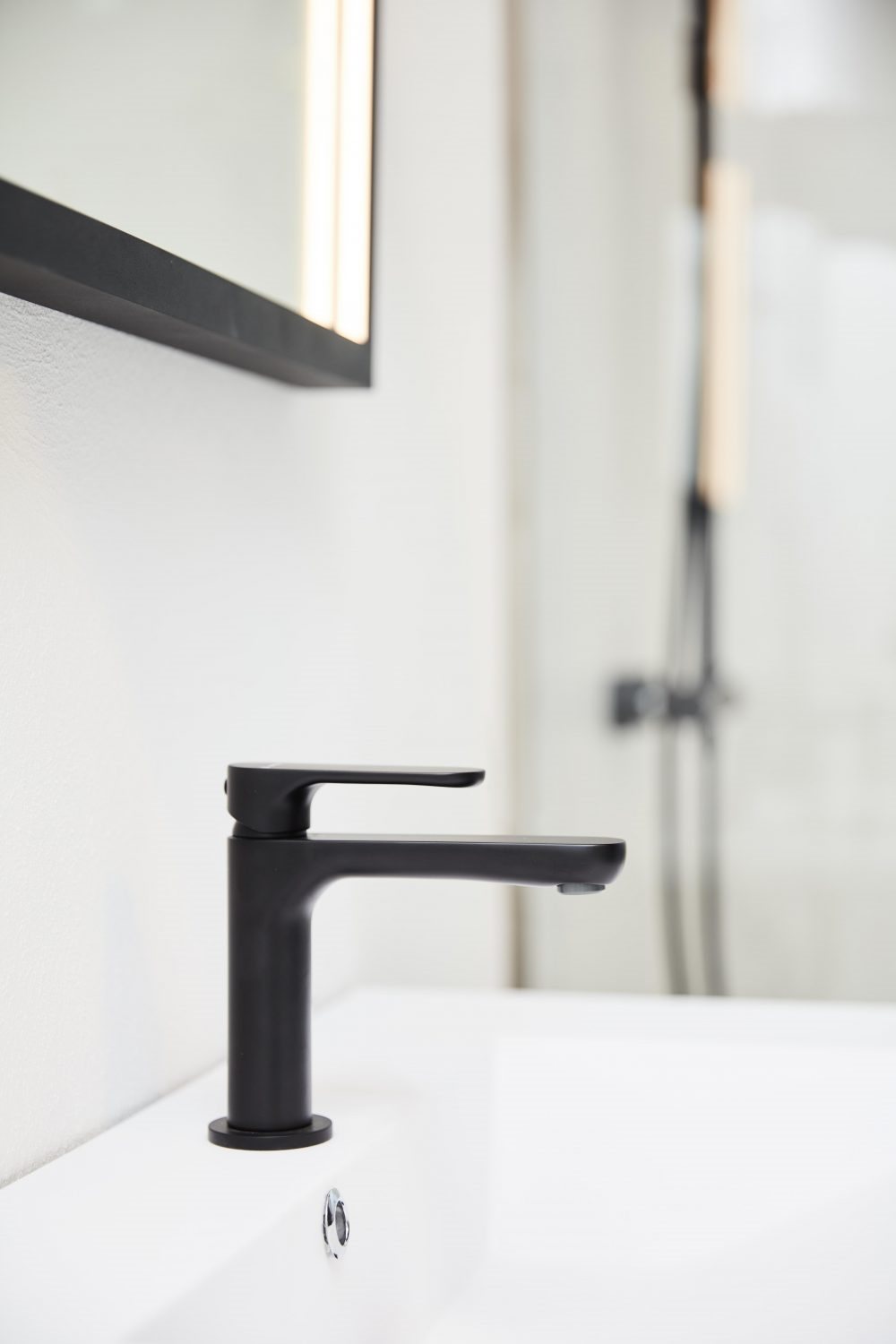Cool håndvaskarmatur i minimalistiske design i mat sort farve, der er super populært. Det fremstår råt og eksklusivt på samme tid, og er en fantastisk kontrast i badeværelsesindretning.