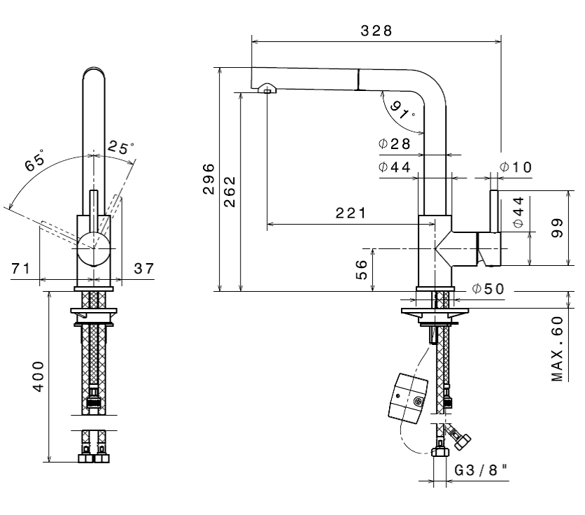 Vandhanen leveres med fleksible 3/8" tilslutningsslanger, der gøre installationen så enkelt som overhovedet muligt.