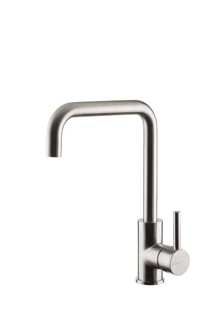 Køkkenbatteriet har en høj svingbar tud med markant look med kant og strømlinet design. Farven børstet krom giver dig mulighed for at udfordre stil og udtryk, uanset om du er til det industrielle eller mere enkle og stringente look.