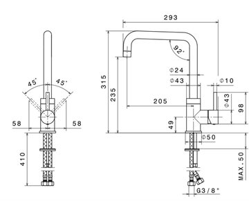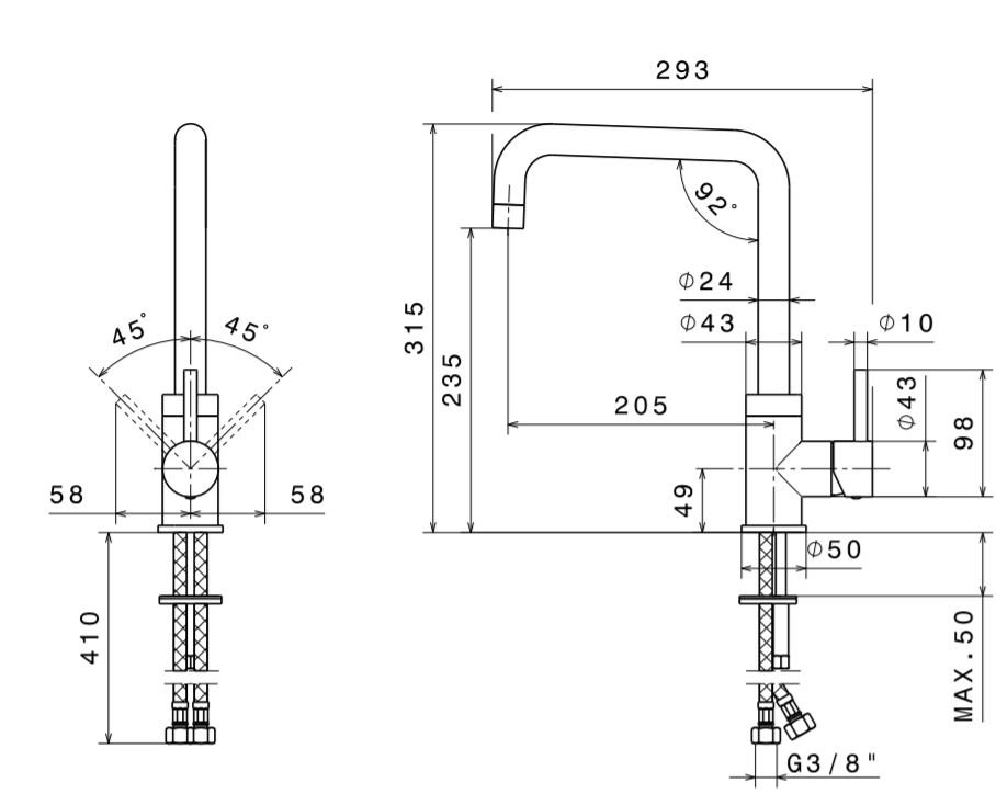 Vandhanen leveres med fleksible 3/8" tilslutningsslanger, der gøre installationen så enkelt som overhovedet muligt.