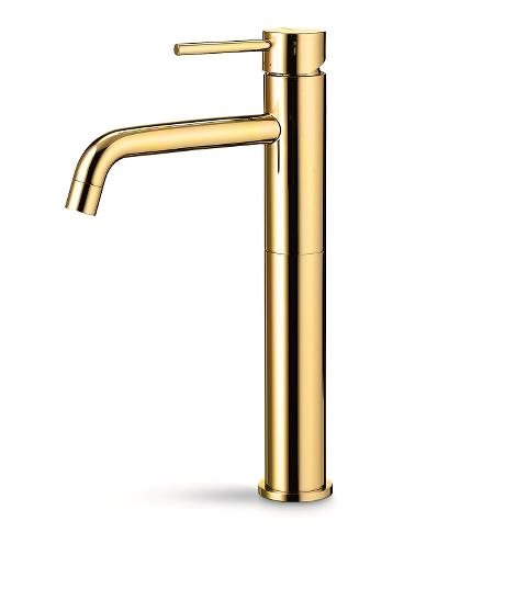 Det høje fritstående Newform XT servante armatur er i poleret blank messing og leveres uden løft-op bundventil. Newform messing overfladen er PVD behandlet, dvs. at farven ikke falmer eller patinere - selv efter mange års brug.