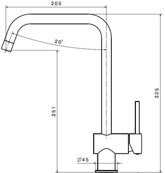 Blandingsbatteriet har en høj buet svingbar J-tud, der sender vandet længere frem i køkkenvasken. Et-grebs armaturets enkle pin greb giver en nem og intuitiv betjening.