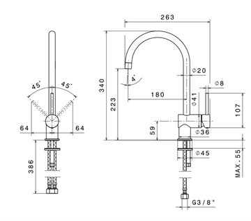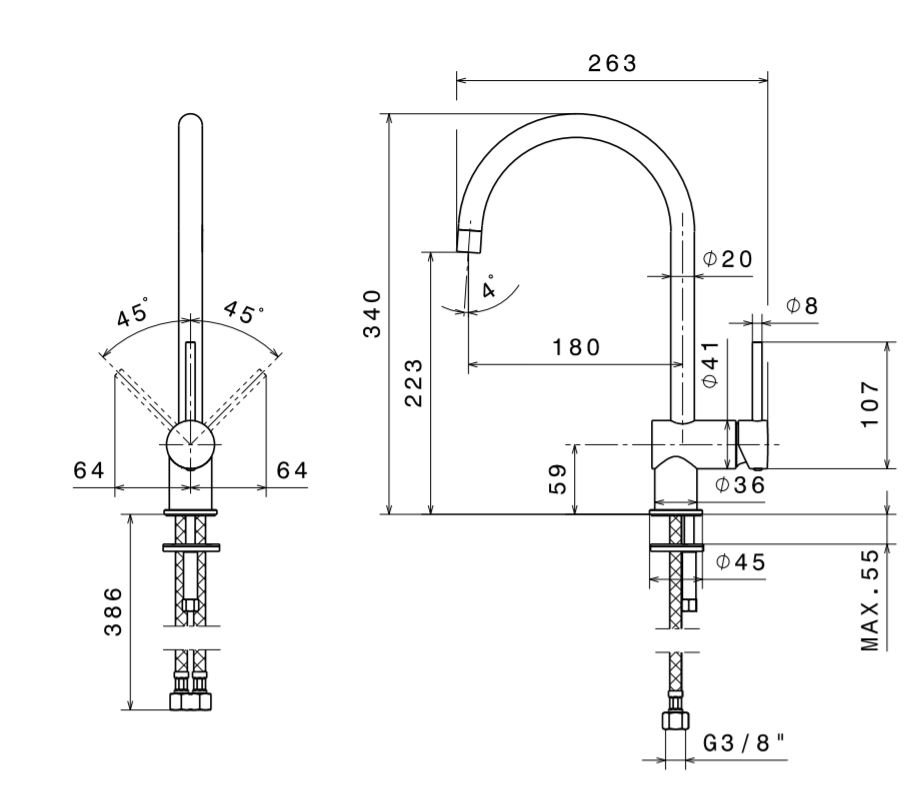 For at gøre installationen af armaturet så enkelt som overhovedet muligt, leveres det med fleksible 3/8" tilslutningsslanger.