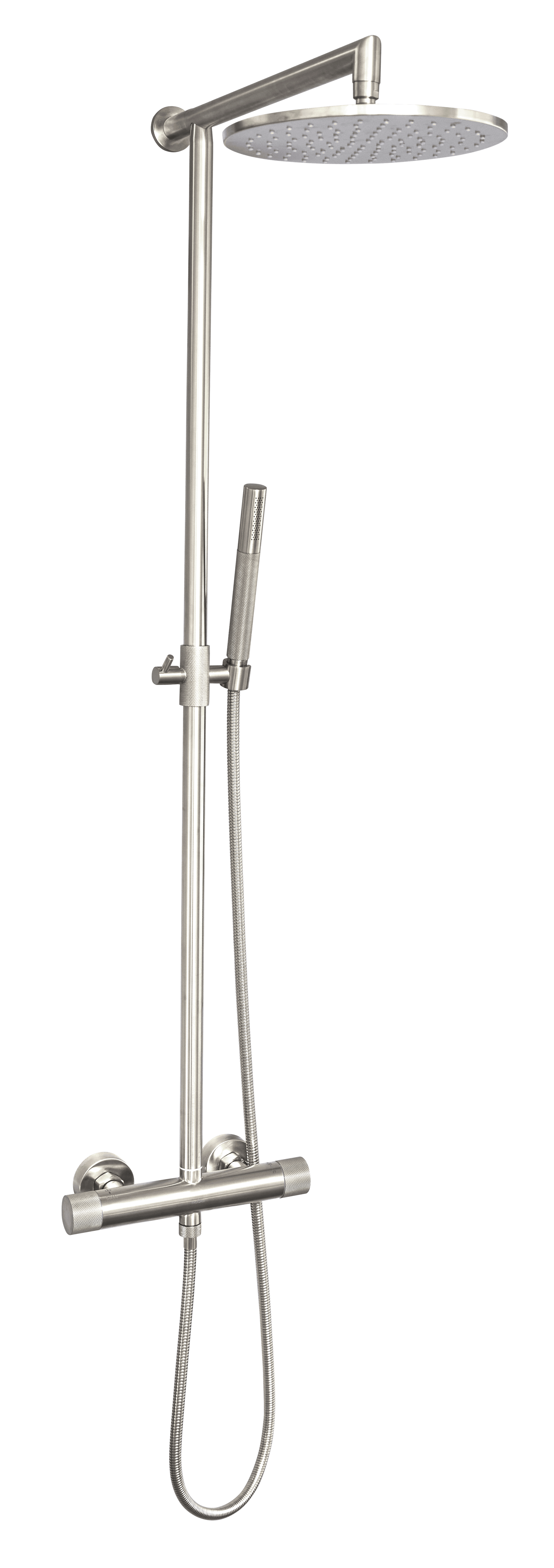 Komplet Noba brusesystem med termostat reguleret armatur samt stort brusehoved og håndbruser i rustfrit stål