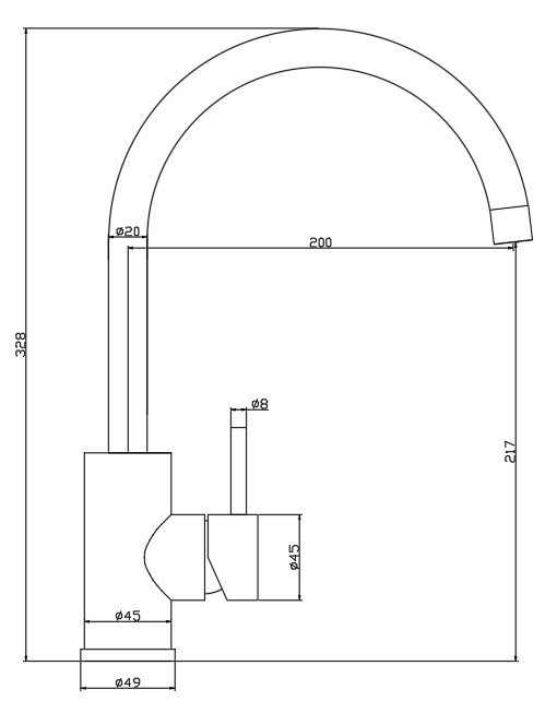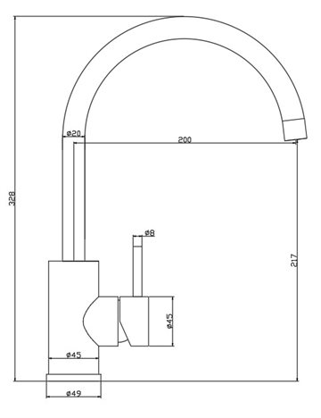 NOBA CK04 køkkenarmatur med høj  C-svingtud i børstet stål