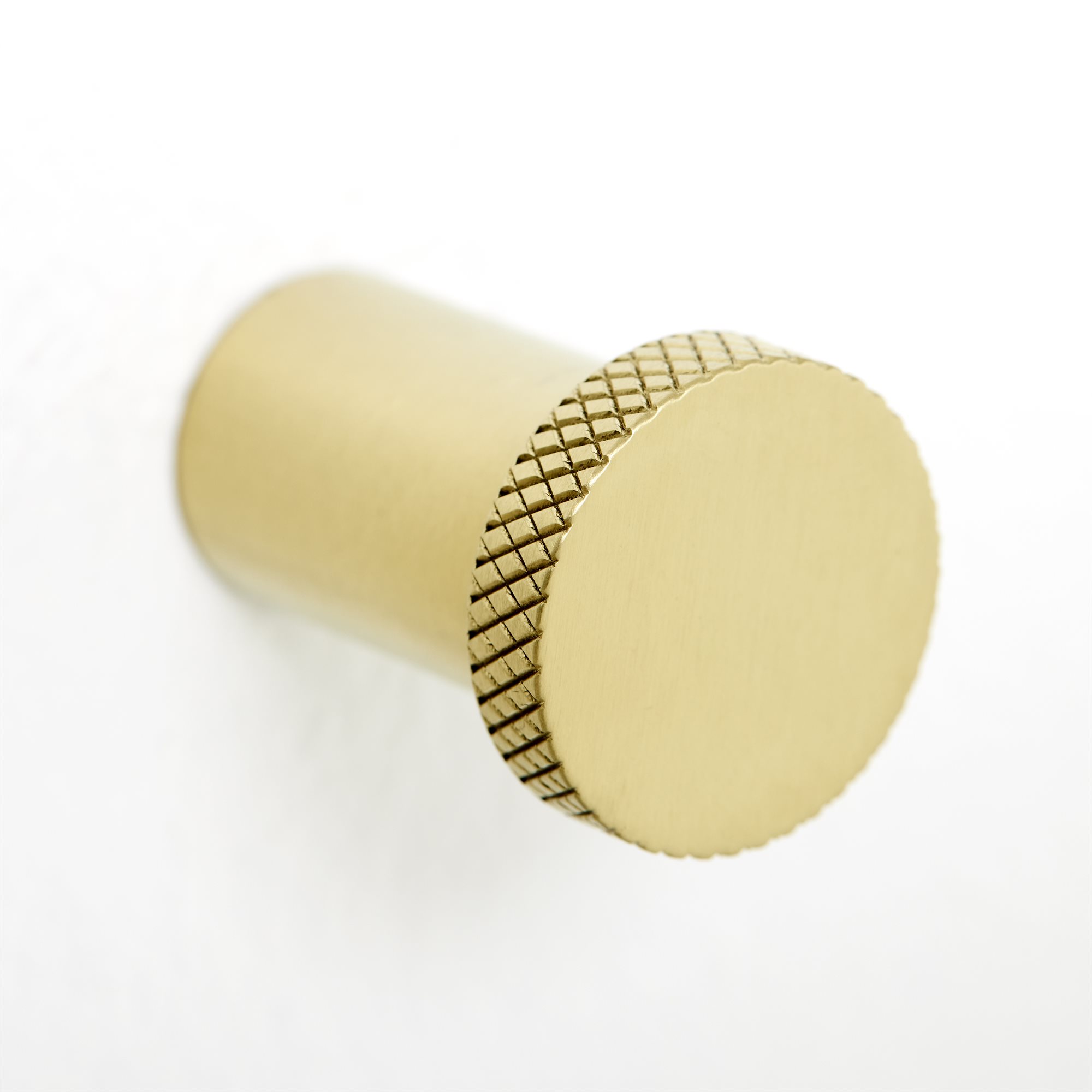 Stilren og flot krog i børstet messing med pind. Krogen kan bruges til mange formål, herunder som håndklædekrog, krog til viskestykke eller som garderobe krog. Uanset formål så bidrager krogen til et eksklusivt look til dit badeværelse, køkken eller i garderoben.