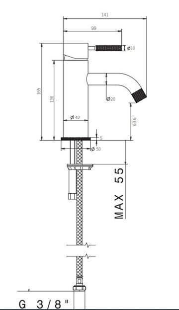 - Tilslutningsform: Flexslanger 3/8" omløbere - længde 500 mm