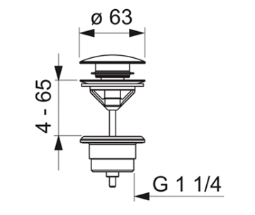 Oras 1 1/4" bundventil push-open, Mat sort