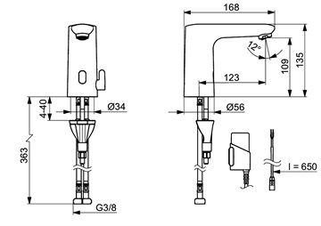 Håndvaskarmaturet tilsluttes nemt med det medfølgende batteri og kabel, og er tilmed indstillet til at give dig besked, når batteriniveauet er lavt.