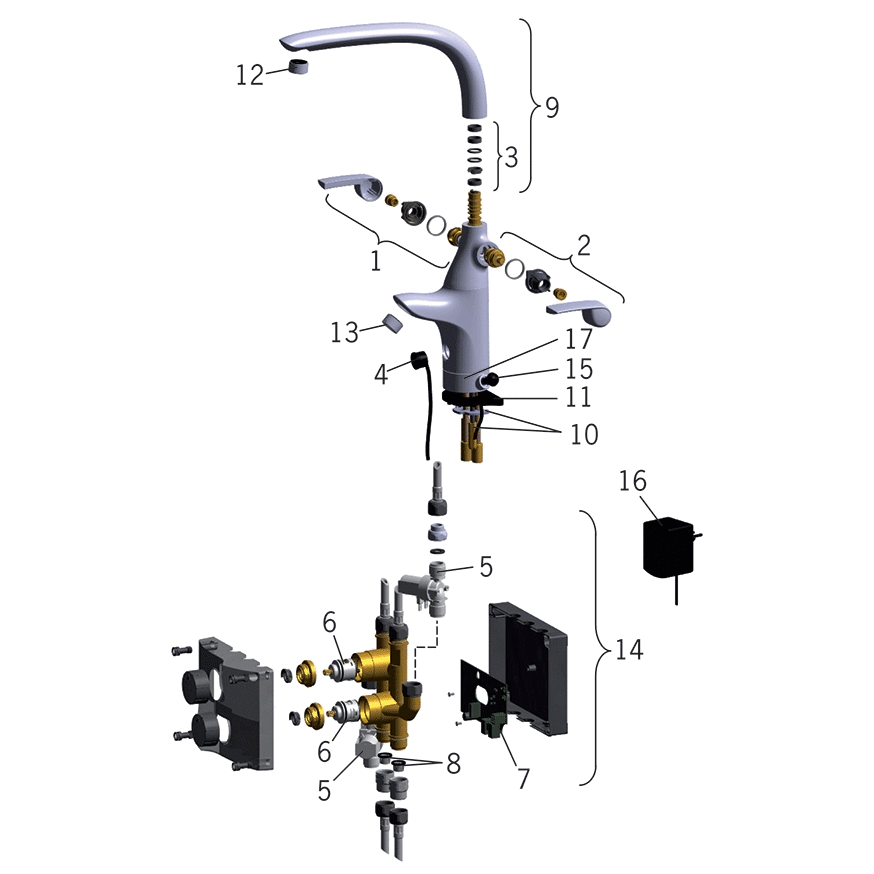 Oras komplet overdel, varm for Oras Ventura 8020 - Vælg variant