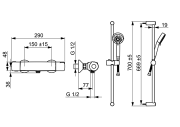 Opsætningen eller installationen af brusersættet er nem og ukompliceret, da den er identisk med et almindeligt brusearmatur med en centerafstand på 150-155 mm.