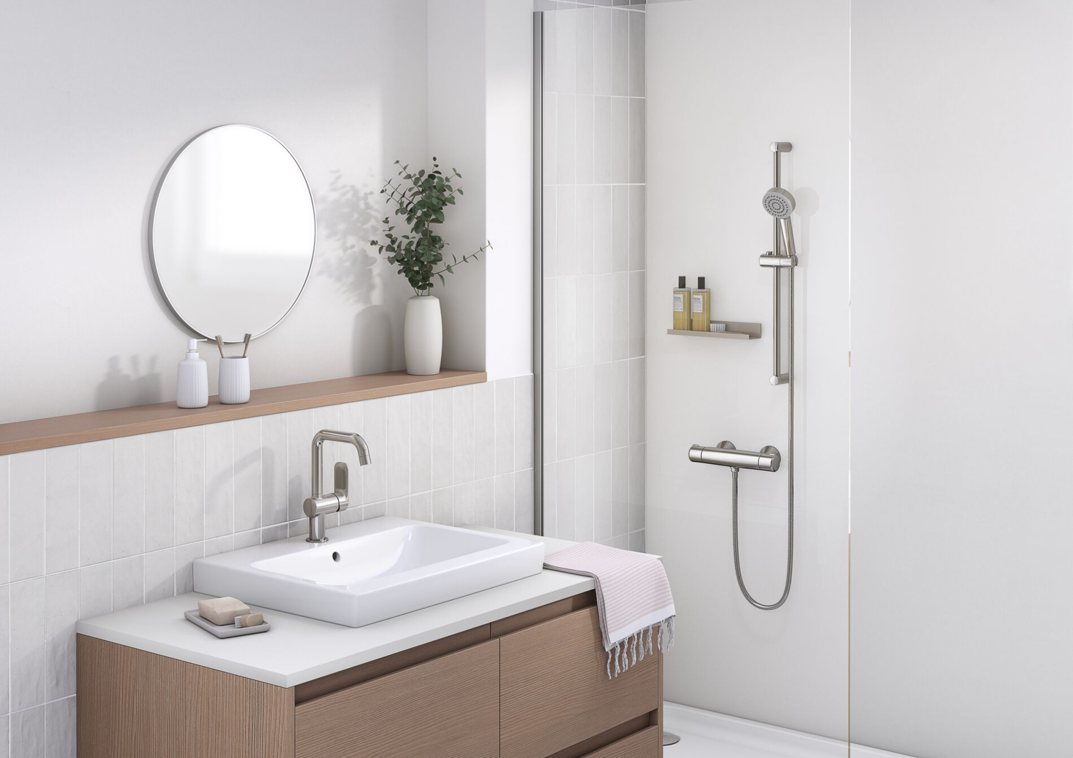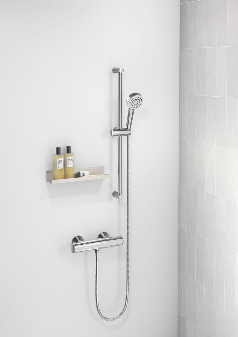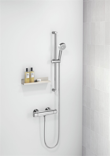 Termostatarmaturet er med anti skoldningsfunktion (38 grader), så der ikke åbnes for det allervarmeste vand ved et uheld, så de mindste familiemedlemmer kan roligt sendes i bad.