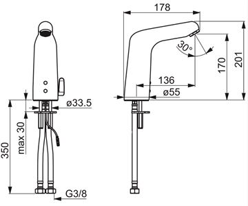 Berøringsfri håndvaskarmatur XL model, udviklet specielt til sundhedssektoren - med temperaturregulering. Autofokus sensor med Bluetooth forbindelse gør det let, at overvåge og justere armaturet. Laminært flow (6 l/min). Armaturet er udstyret med smudsfiltre og specielle tilslutningsslanger med integrerede kontraventiler. Fast strømtilslutning til enten 9 V eller 12 V. Elektrisk tilslutning til 9 V er med stikprop transformer og 12 V er via en separat transformer. Strømforsyning er ikke inkluderet i produktet.6414150080166