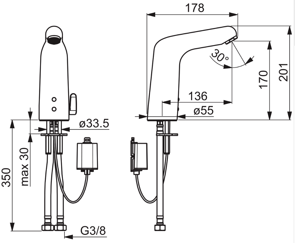 Berøringsfri håndvaskarmatur XL model, udviklet specielt til sundhedssektoren - med temperaturregulering. Autofokus sensor med Bluetooth forbindelse gør det let, at overvåge og justere armaturet. Laminært flow (6 l/min). Armaturet er udstyret med smudsfiltre og specielle tilslutningsslanger med integrerede kontraventiler. Batteridrevet 6 V. Autofokus sensor med Bluetooth forbindelse gør det let, at overvåge og justere armaturet.