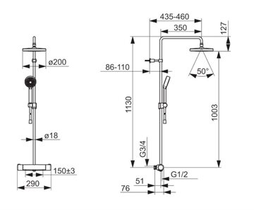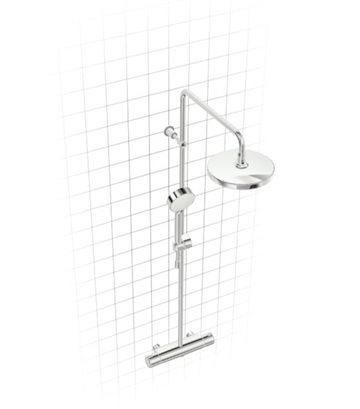 Oras Nova Rain er et termostatisk brusersystem med Ø200 mm stort hovedbruser og Ø95 mm håndbruser. Blandingsbatteriet er udstyret med skoldningssikring ved 38 grader på temperaturreguleringen samt mængderegulering med EcoFlow.