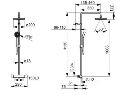 • Bruserdele Håndbruser, Bruserstang, Hovedbruser, Justerbar bruseholder, Bruserslange (1750 mm), Fleksible monteringshuller, Roterbar kugleledstilslutning, Anti-kalk teknologi