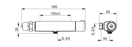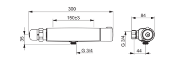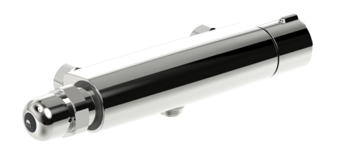Termostatisk bruserarmatur med selvlukkende trykknap. Trykknappen lukker automatisk efter et forindstillet tidsrum (kan indstilles til 10 - 60 sekunder). Temperaturreguleringen er udstyret med skoldningssikring ved 38°C.
