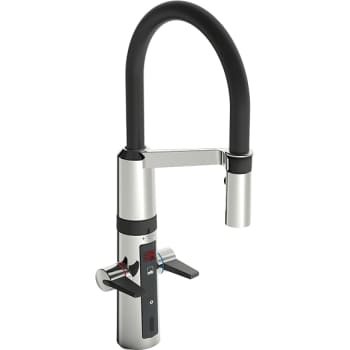 Oras Optima Køkkenarmatur berøringsfri 2728F har betjeningsvenlige greb til varmt og koldt vand og en berøringsfri funktion, temperaturdisplay med advarsel ved varmt vand samt høj fleksibel svingtud, 5 V.