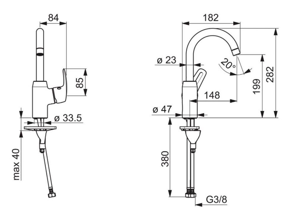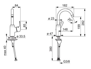 Oras Safira håndvaskarmatur 1007F med svingtud og  uden bundventil i krom