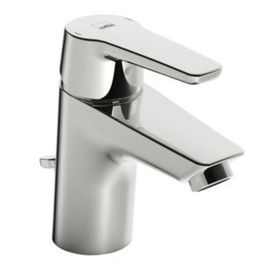 Oras Saga Håndvaskarmatur med løft-op bundventil. Armaturet er udført i et slankt, strømlinet design, der passer ind på de fleste badeværelser.