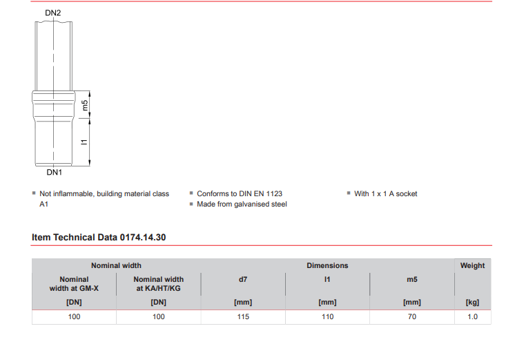 Overgang til pvc loro-x dn100 i galv. stål, 110 mm