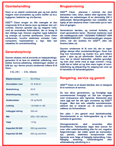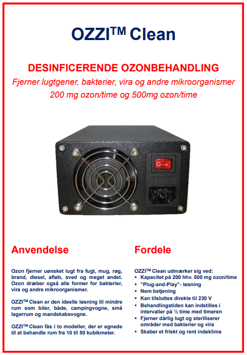 OZZI® Clean er en transportabel ozongenerator, der hurtigt og effektivt fjerner uønsket lugt fra mug, røg, brand, diesel, afløb, sved og meget andet. Ozon dræber også bakterier, virus og svampe.