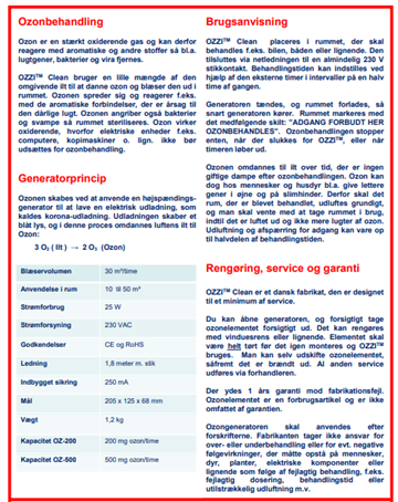 OZZI® Clean tilsluttes en almindelig 230 V stikkontakt, placeres i rummet og klarer arbejdet selv. Efter behandling luftes rummet ud – og er herefter friskt, rent og klar til brug.