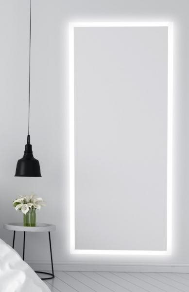 Påklædnings spejl med integreret LED lys front og backlight - højde 160 cm, bredde 60 cm. Spejlet er lavet af belgisk AGC MIROX eco glas.