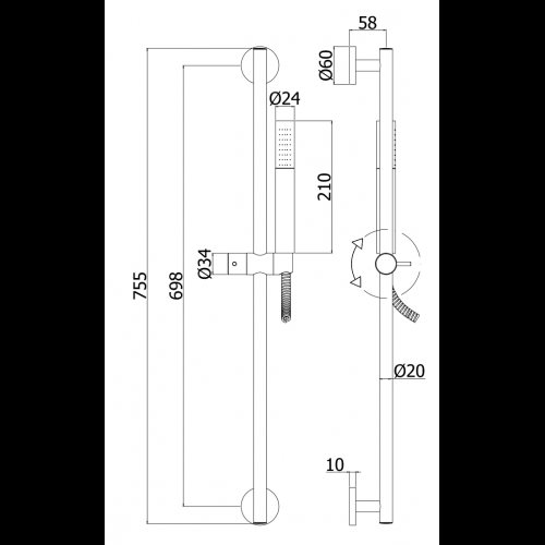 Håndbruserens brusehovedet har små silikone dyser, så kalkrester let kan gnides af de fleksible dupper med en finger.