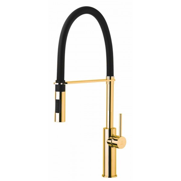 Paffoni Light køkkenarmatur med udtrækstud og sort fjeder slange, Poleret messing