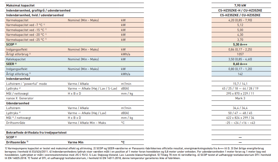 SCOP på 5,69. En tredjepartstest på Dansk Teknologisk Institut (DTI) viste, at HZ35XKE har et imponerende højt SCOP på 5,3. Det betyder en stor energieffektivitet.