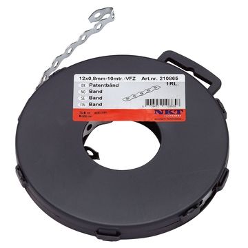 Varmforzinkede patentbånd. Materialet er blødt jern, der kan bukkes og er derfor let at håndtere.