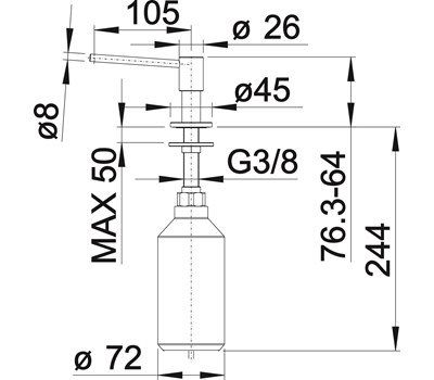 Sæbedispenser, der passer til SteelArt-serien. Designet med de afrundede hjørner passer til Claron og Clarox køkkenvaskenes design.