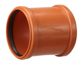 Dobbeltmuffen er glat på både inder- og yderside, og har en indstikmuffer med gummiringe i hver ende, der sikre tætte samlinger og nem montering.
