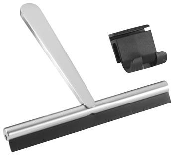 Badskraberen leveres med en medfølgende holder og kan nemt monteres på Pressalit Style hylden eller på kanten af brusevæggen. Indeholder 1 ekstra skraberblad. Ekstra skraberblade og holder kan tilkøbes. Holderen kan også limes op på væggen for nem opbevaring.