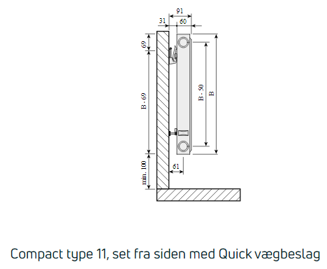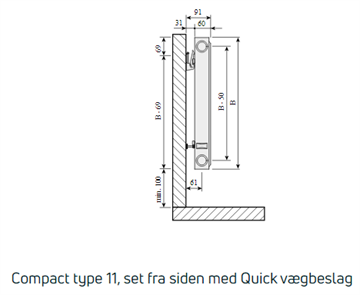 Purmo Compact C11 højde 600 mm, er en klassisk panelradiator, som er opbygget med enkeltplade og en konvektionslamel. Den har standard 4 sidevendte anboringer, ABCD og leveres med 1 luftskrue og 1 blindpropper og Purmo vægkonsoller. Purmo Compact C11 har et tidløst og traditionelt design og leveres som standard i farven hvid, RAL 9016.