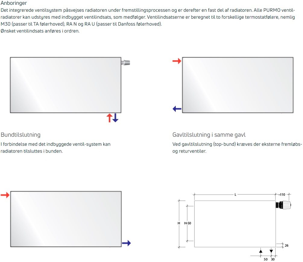 Purmo Plan radiator med integreret ventil - type FCV22 - Højde 600 mm - fås i flere længder
