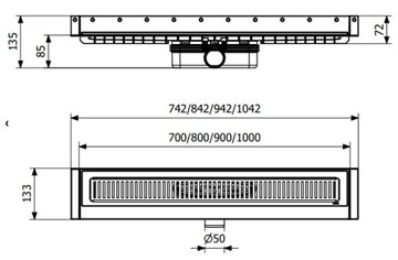 Purus Line 900 mm er en elegant og funktionel gulvafløbsløsning, designet til moderne badeværelser med fokus på både æstetik og ydeevne. Denne model med Ø50 mm vandret lav udløb leveres som en komplet pakke med vandlås og alle nødvendige dele til en nem og sikker installation.