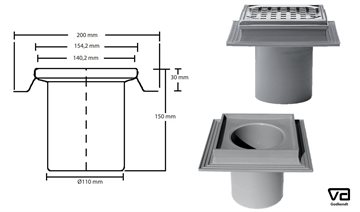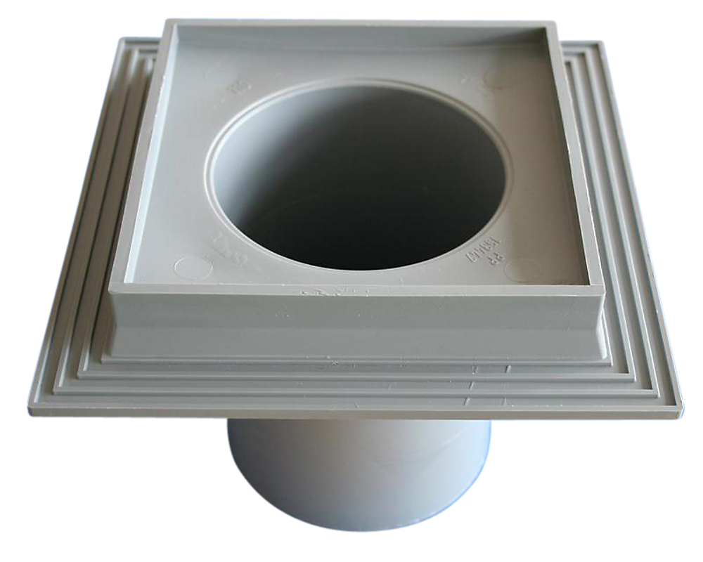 Maxi-Flex afløbsskål i PP-plast til indstøbning i beton uden studs og rist, lodret