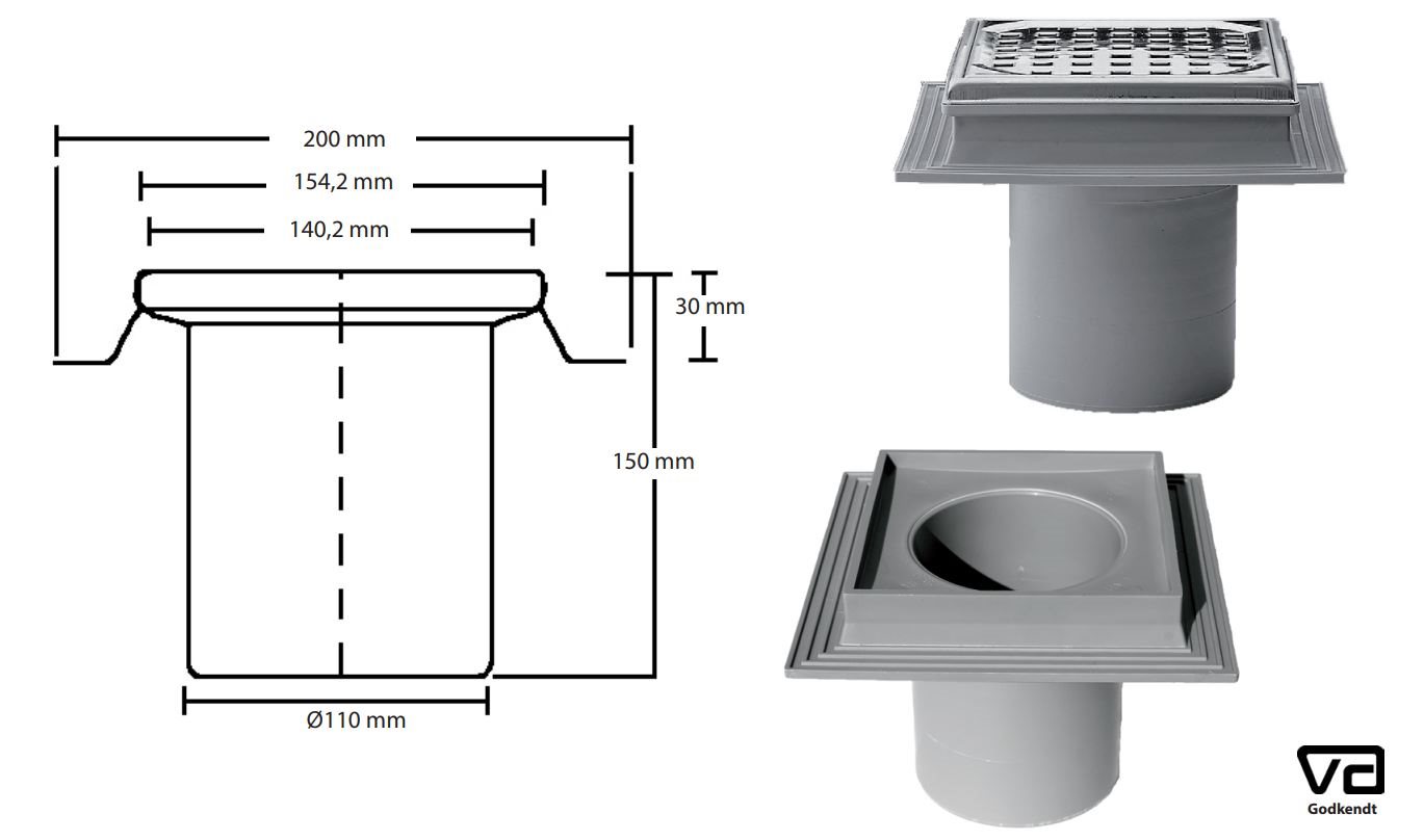 Purus Maxi-Flex afløbsskål, 110mm. ekskl. rist