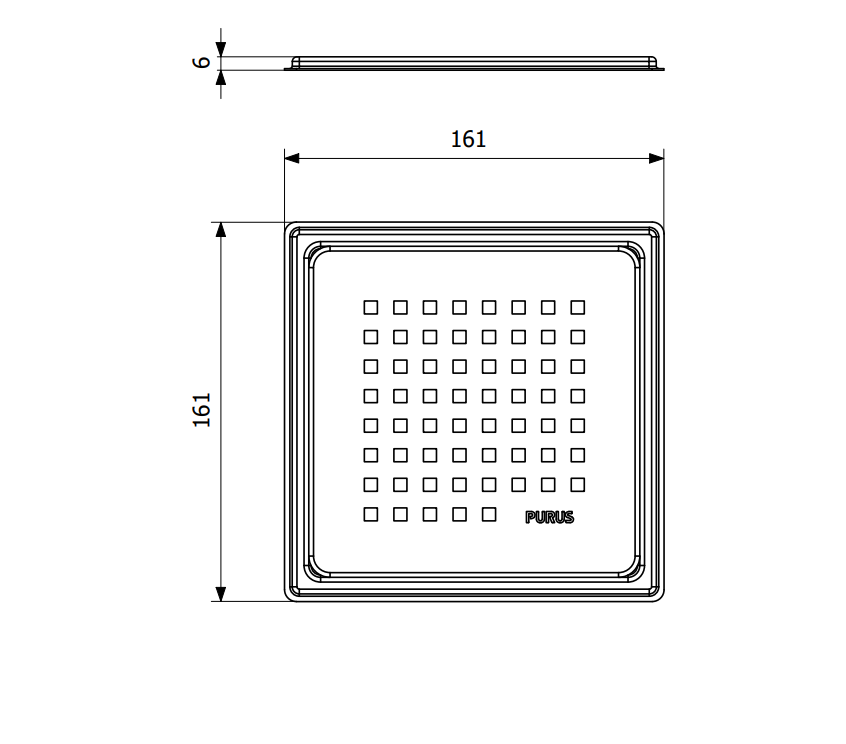PURUS CHESS ramme/rist 150 x 150mm til gulvafløb i PVD coated messing farve, det vil sige, at den ikke patinere med tiden.