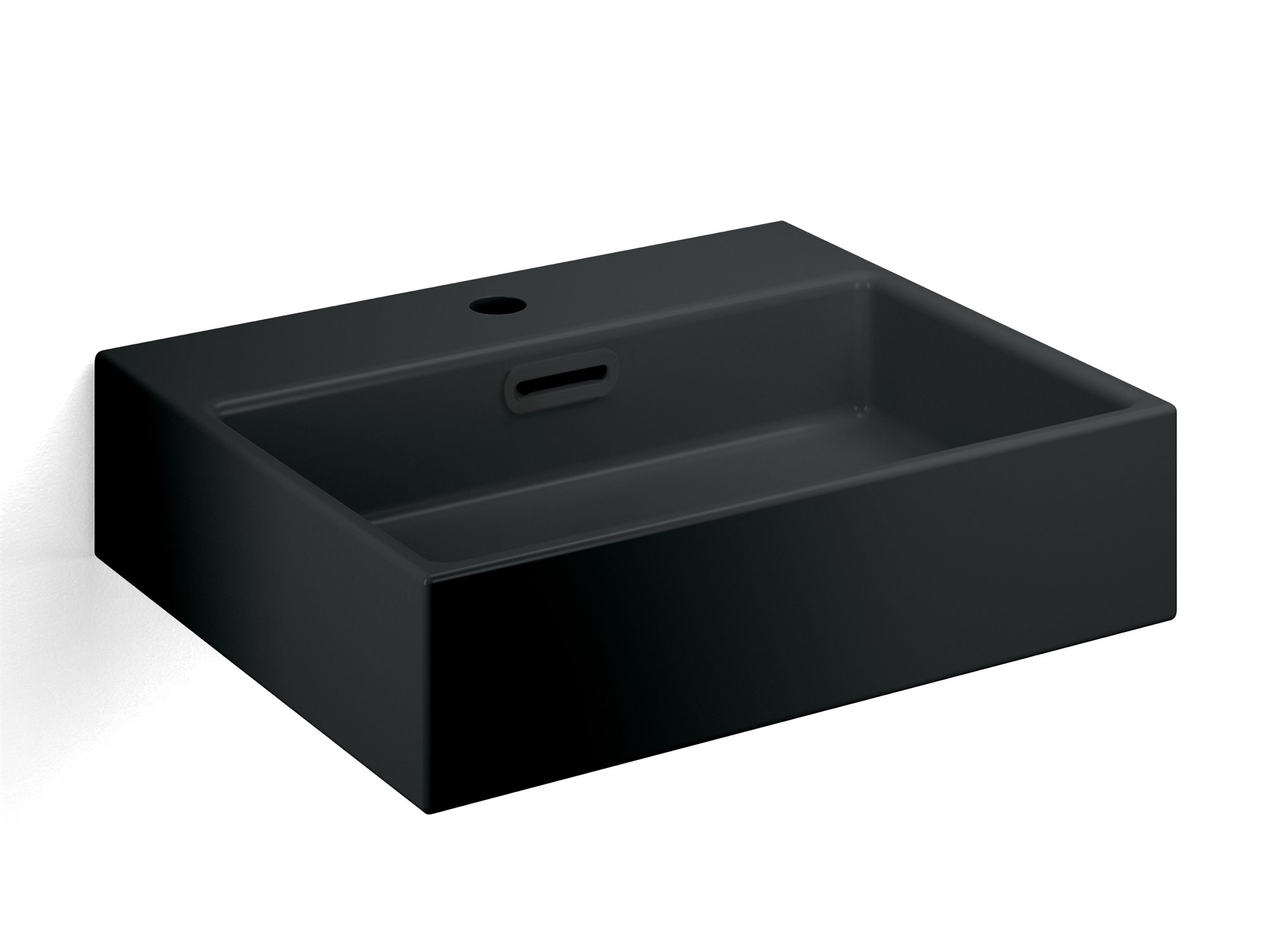 Quarelo Firkantet porcelænsvask i mat grå, til bord- og vægmontering 49x42 cm med overløb og hanehul.