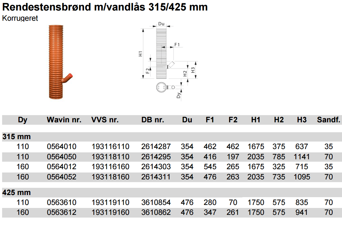 Rendestensbrønd 315mm m/110 mm vandlås 35l. sandfa - Rendestensbrønd 315mm m/110 mm vandlås 35l. sandfa